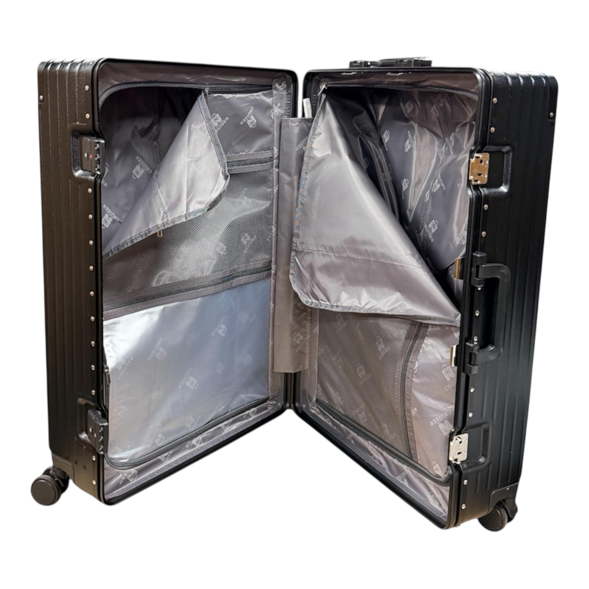 Большой чемодан Крузер размер L (75cm x 48cm x 32cm)с алюминиевым каркасом и 100% поликарбонатом.Чемоданы с корпусом из поликарбоната и алюминиевым каркасом — это прочные и долговечные модели, которые сочетают лёгкость, ударопрочность и надёжную защиту содержимого. Алюминиевый каркас предотвращает деформацию корпуса, а поликарбонат устойчив к царапинам, перепадам температур и механическим повреждениям. Такие чемоданы часто оснащаются дополнительными функциями: кодовыми замками, телескопическими ручками, колёсами с амортизацией.