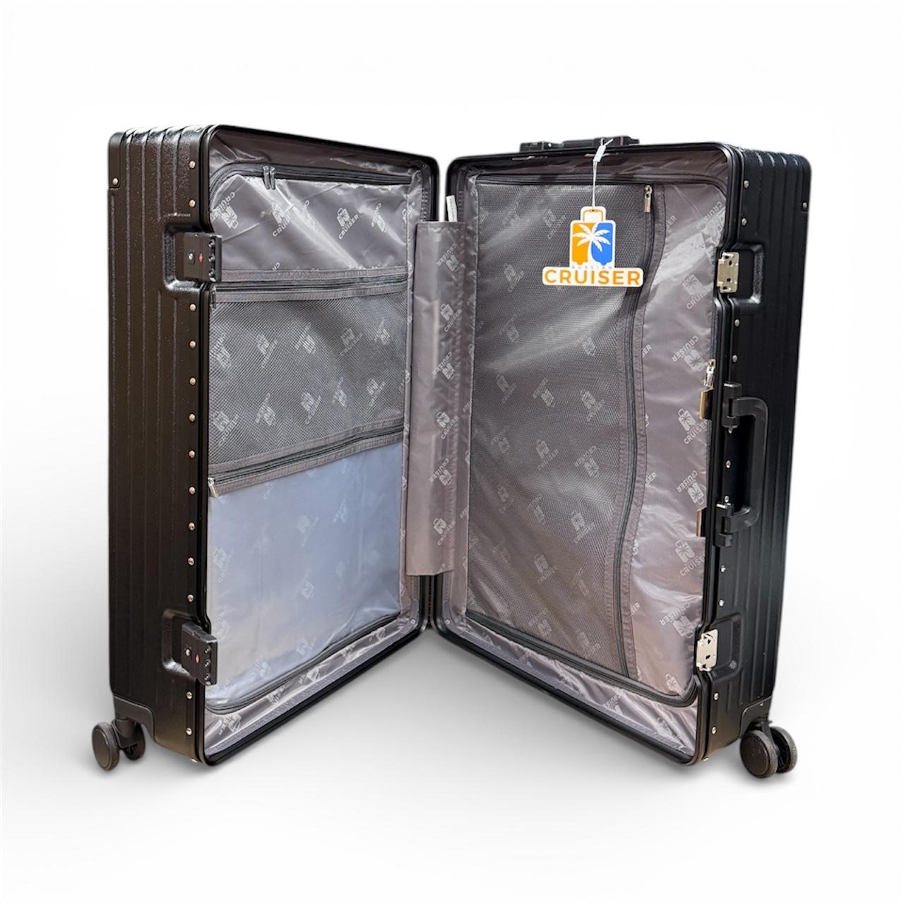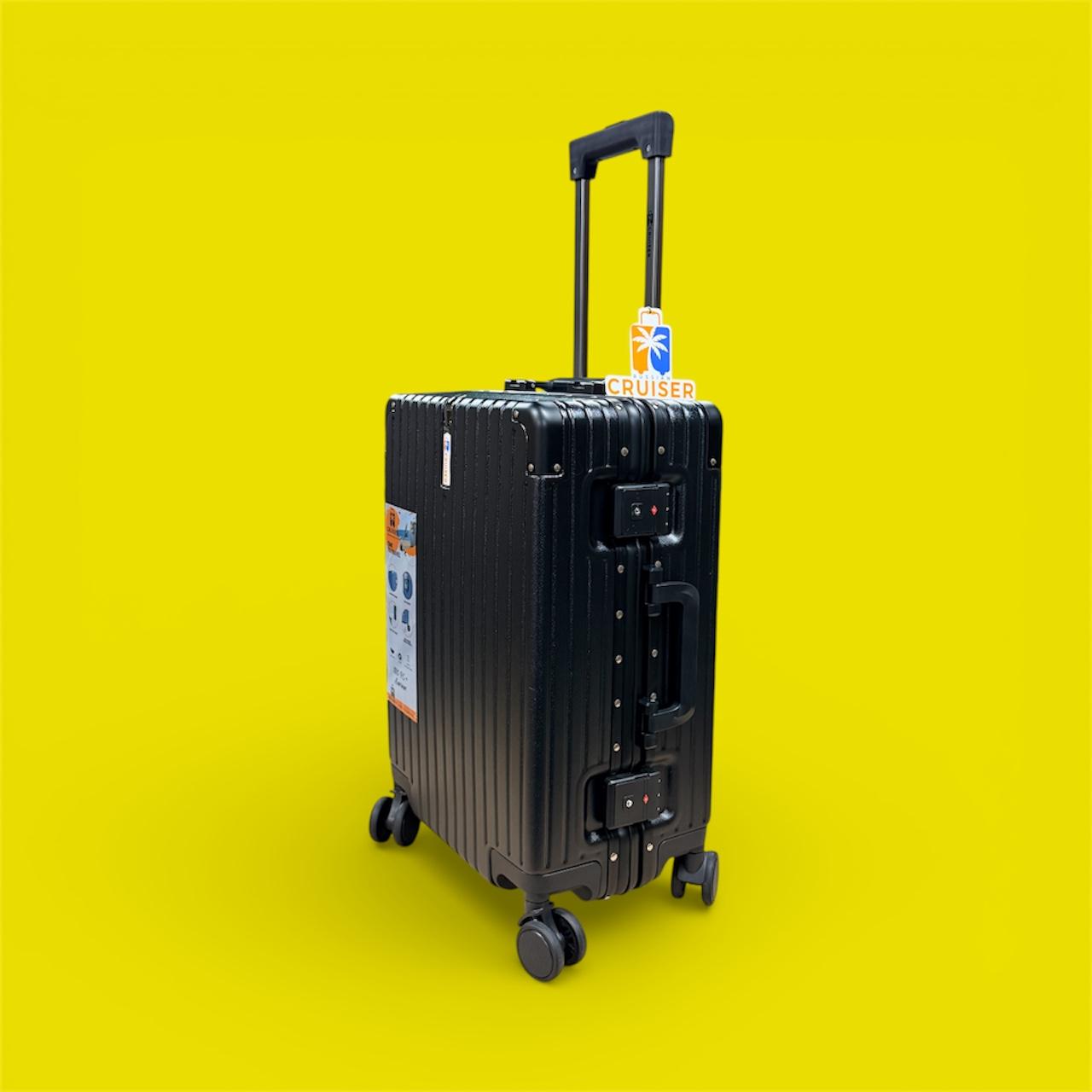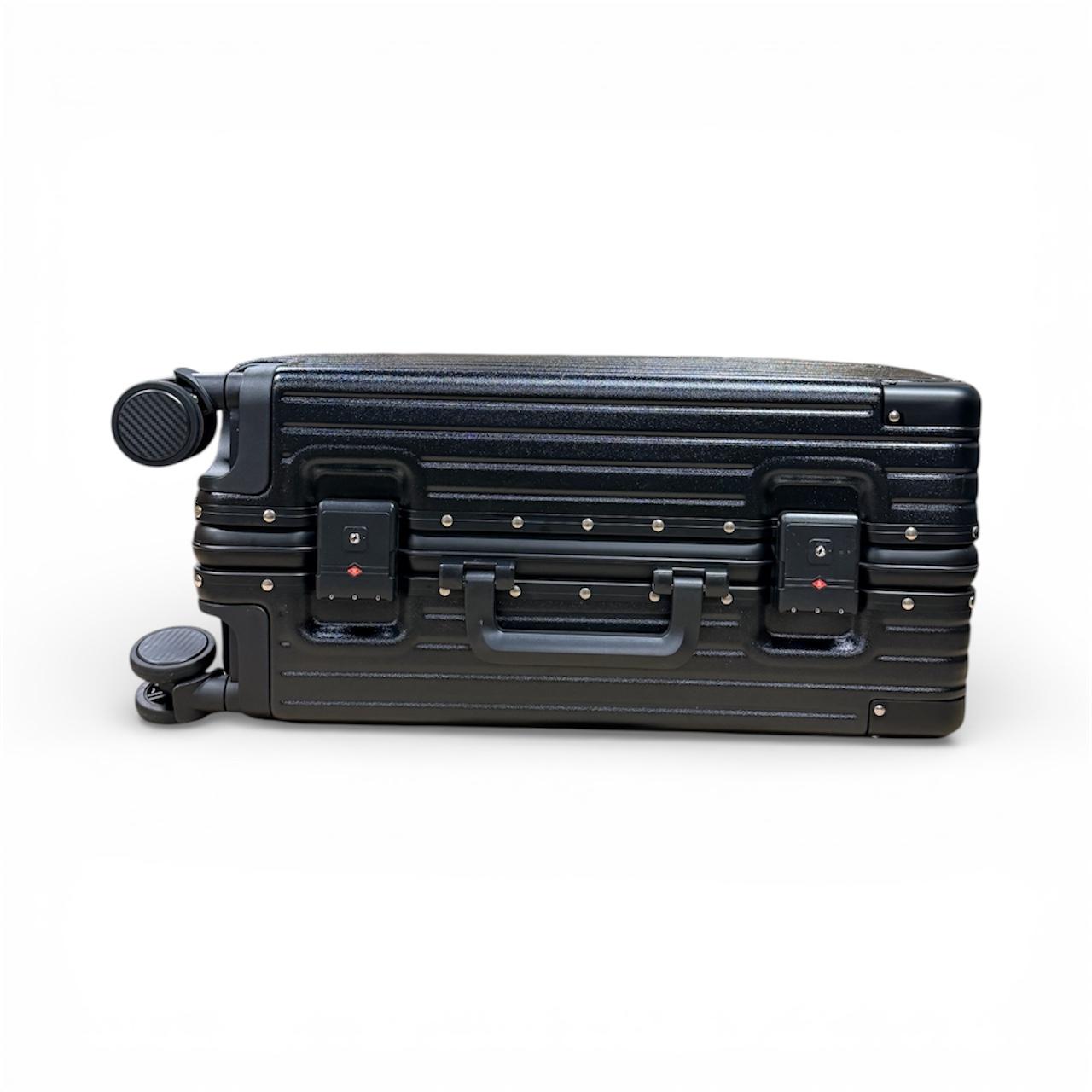 Чемодан ручная кладь сделан из материала 100% поликарбонат и каркас алюминия . Ударопрочный , 4 колеса бесшумные , телескопическая ручка три положения , TSA замок , USB-Type C выход , держатель стакана .