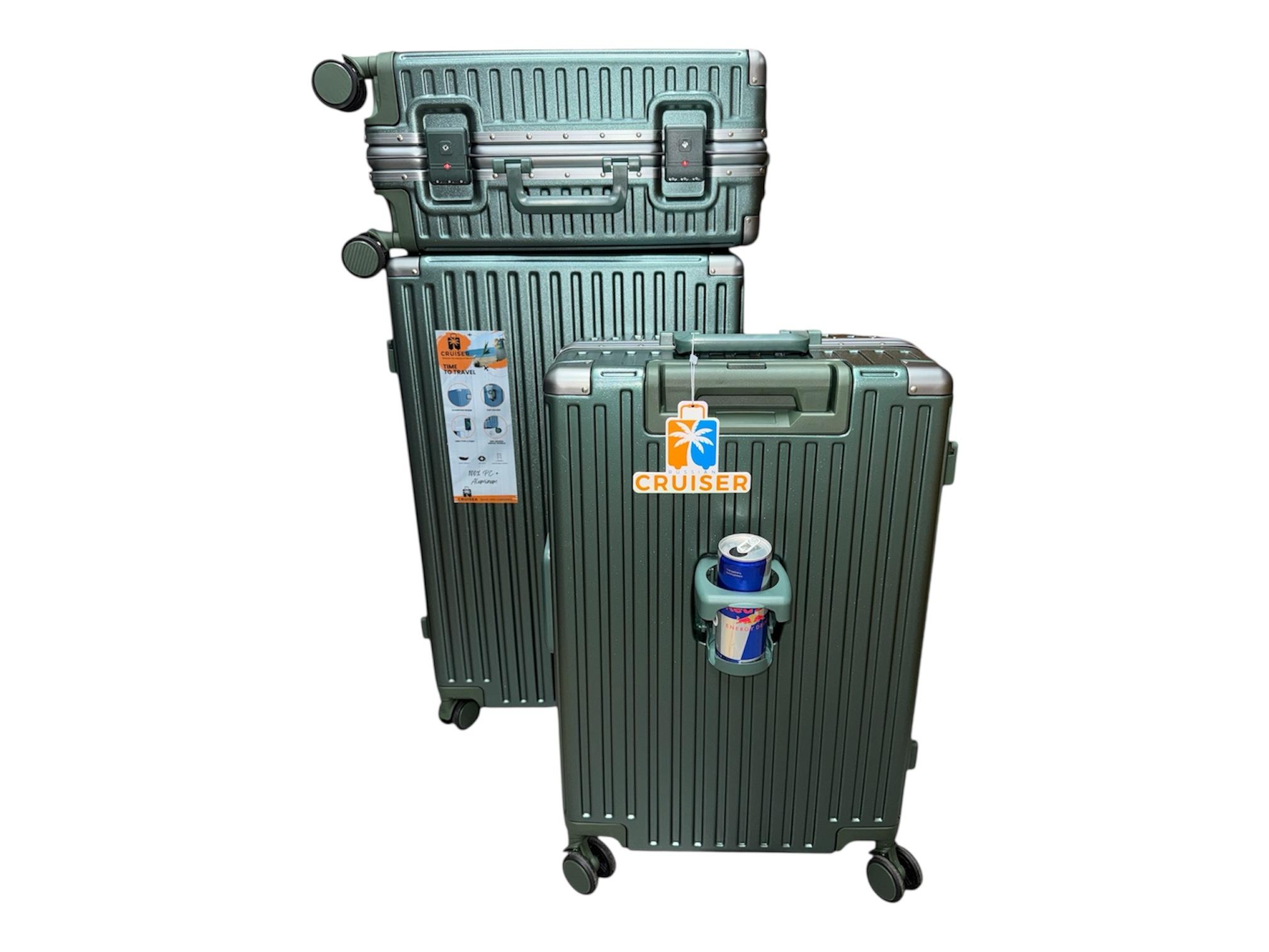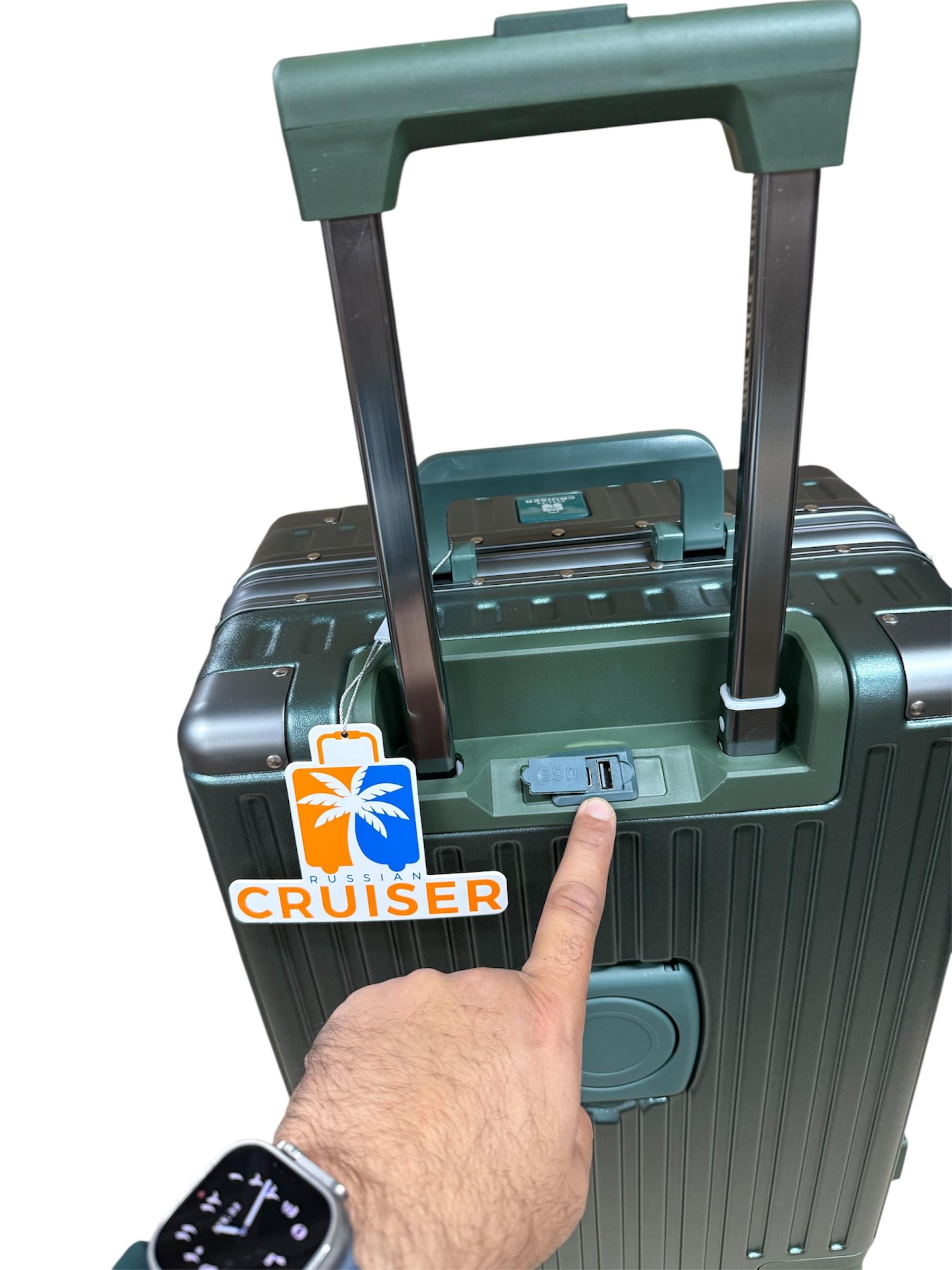 Чемодан размер S (55см х 23см х 36см)ручная кладь от бренда CRUISER RUSSIAN корпус сделан из 100% поликарбоната и каркас из алюминия . Замок TSA , USB-TypeC выход , держатель стакана , телескопическая ручка , четыре вращающиеся колёса .