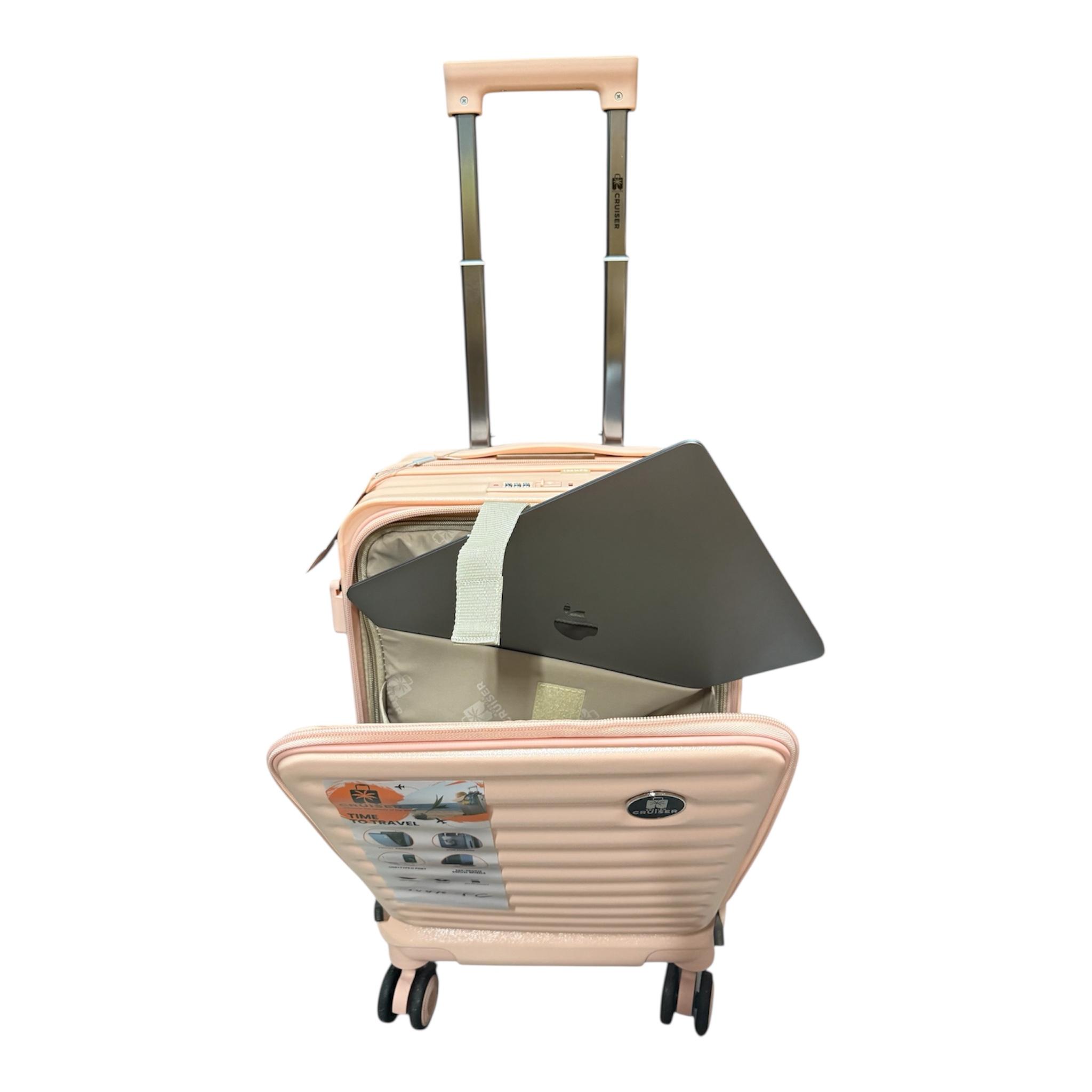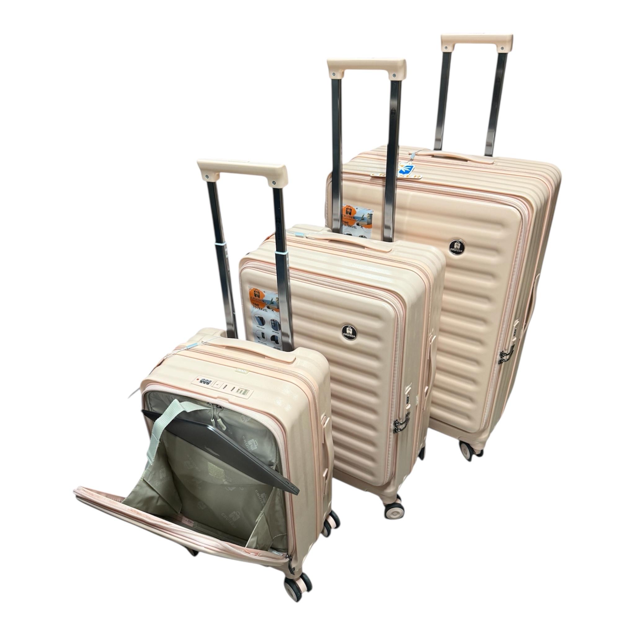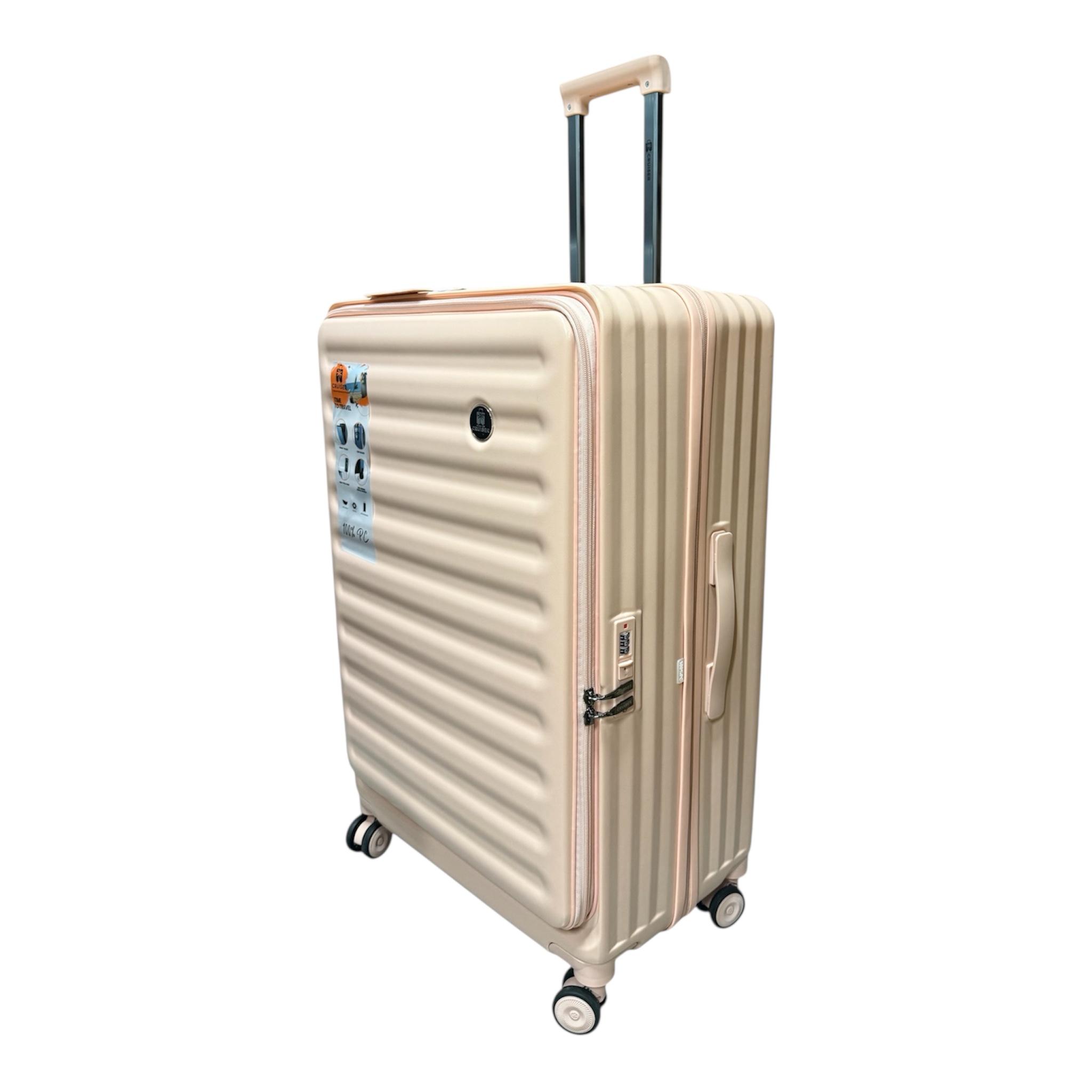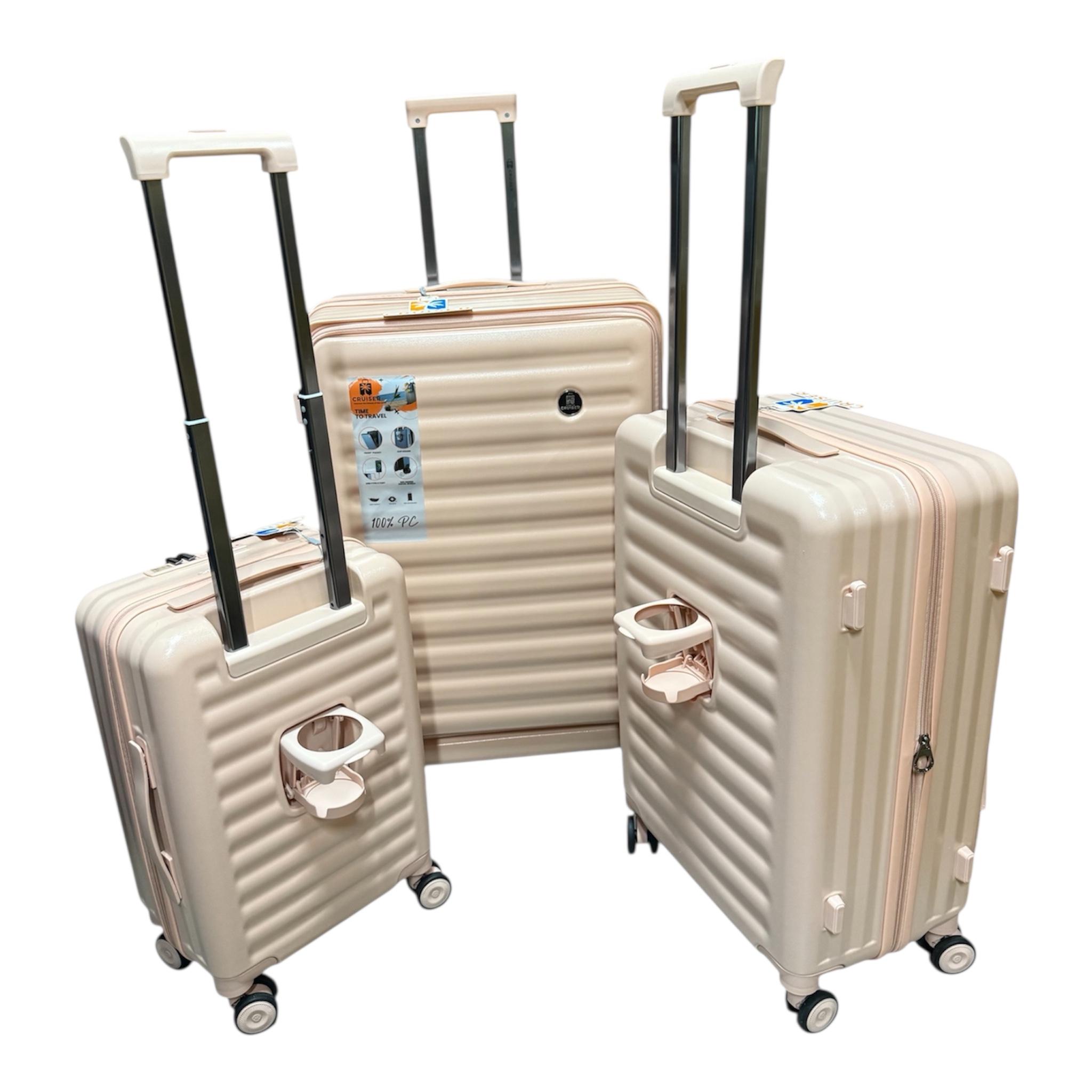 Чемоданы КРУЗЕР с расширением на 20% , держатель стакана , телескопическая ручка , молния антивор и с USB - TC выходом , кодовый замок TSA. Размеры:L,M,S (79cmx52cmx32cm),(67cmx43cmx27cm),(55cmx35cmx24cm)